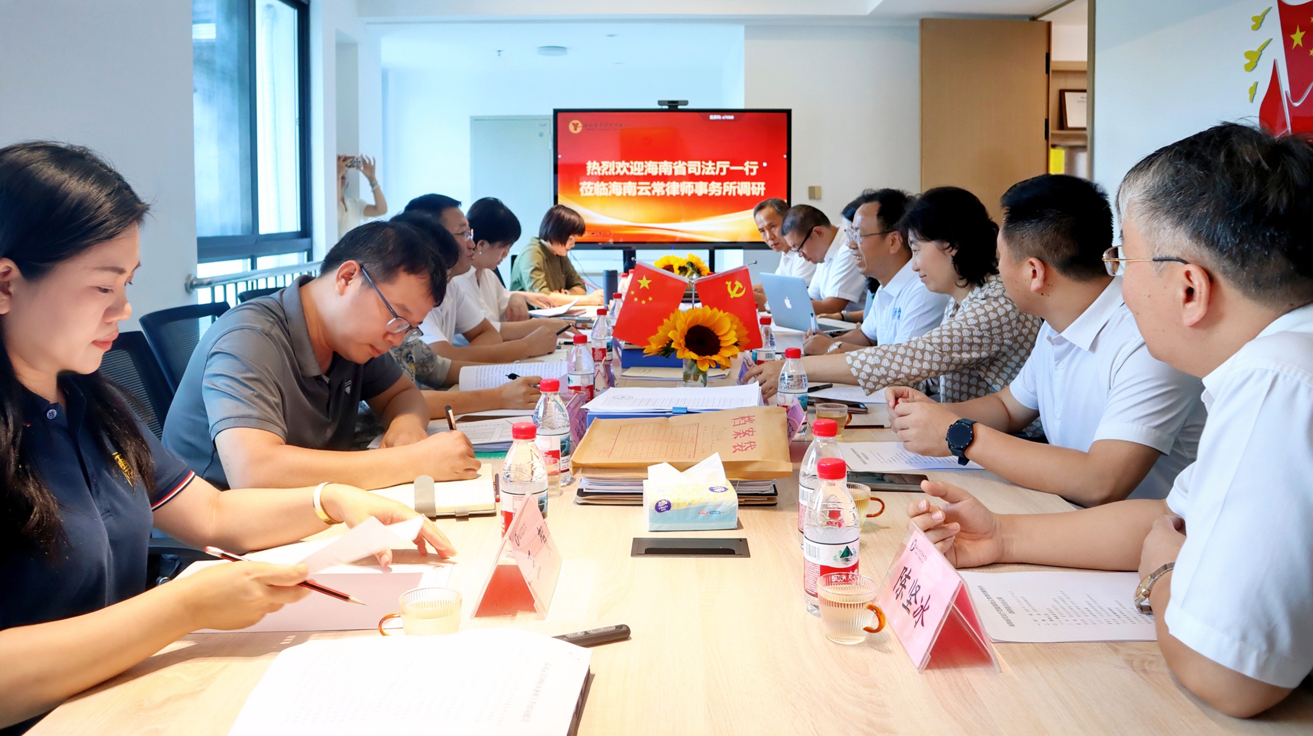 2025年5月20日,海南省司法厅律师工作局局长廖斌、副局长陈萍萍一行莅临海南云常律师事务所,围绕律师行业管理服务工作开展专题调研座谈。三亚市司法局四级调研员、三亚市律师行业党委书记蒲慧芳等陪同调研。海南云常律师事务所主任汪印琪,执行主任陈坚冰,高级合伙人王贺、苏蕾出席会议。海南惠海律师事务所、广东华商(三亚)律师事务所、海南信辞律师事务所、海南建亚律师事务所、海南同玺律师事务所等多家律所相关负责人也一同参加座谈。