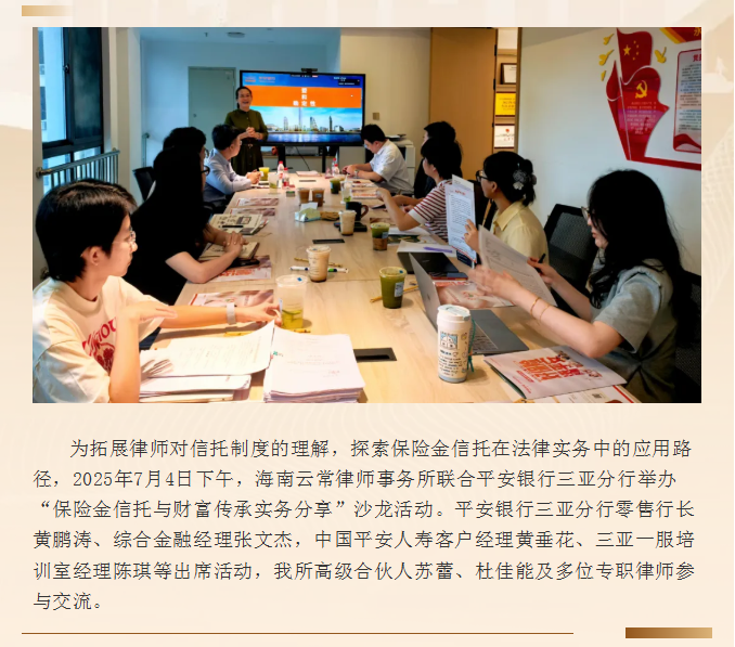家业有“法”·传承有道——海南云常律师事务所举办“保险金信托与财富传承实务分享”沙龙活动