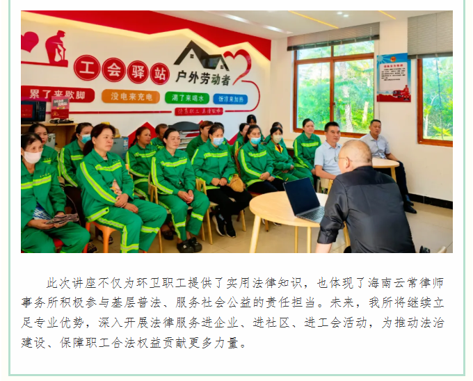 炎炎夏日送清凉,法治护航沁人心——我所受邀开展“工会送清凉、防暑保安康”法律维权进基层讲座