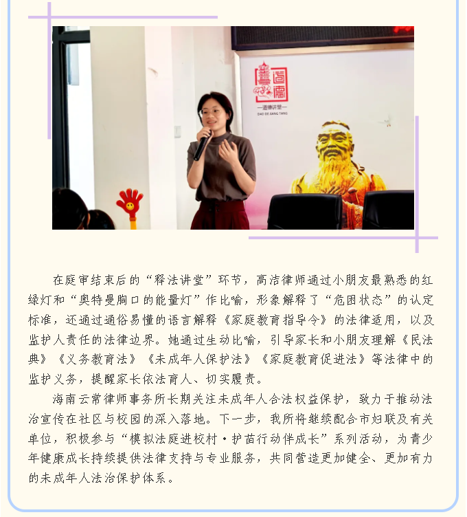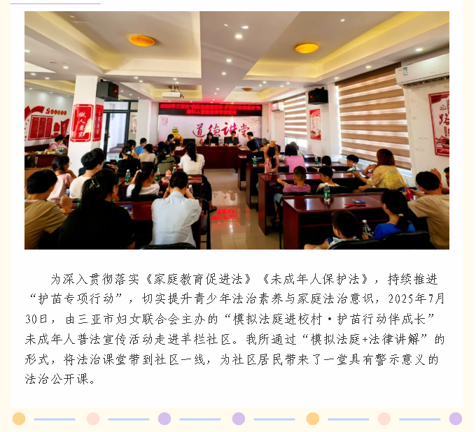护苗行动伴成长,法治护航到身边——云常律师模拟法庭走进羊栏社区