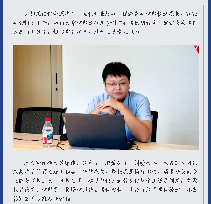 以案促学 共促成长——海南云常律师事务所召开案例研讨会