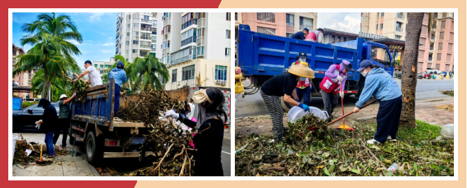 8月28日,党支部书记王浩淼同志带领律所党员、律师和行政运营部人员前往三亚市第五中学门口,投身灾后环境清理。大家分工明确、协作有序,手持铁锹与扫帚,冒着高温湿热,清扫步道积淤,搬运倒伏树枝,将枯枝落叶、杂物垃圾一车车装运。党员的先锋模范作用与同仁们的积极担当相互呼应,汇聚成守护家园的强大合力。
