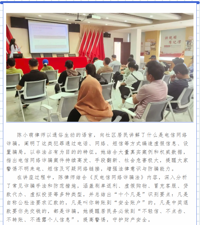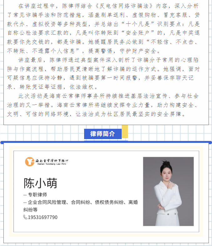 云常普法|反诈普法进社区,守护居民“钱袋子”——海南云常律师事务所走进回新社区开展网络安全法治讲座