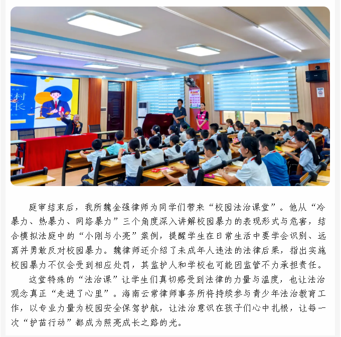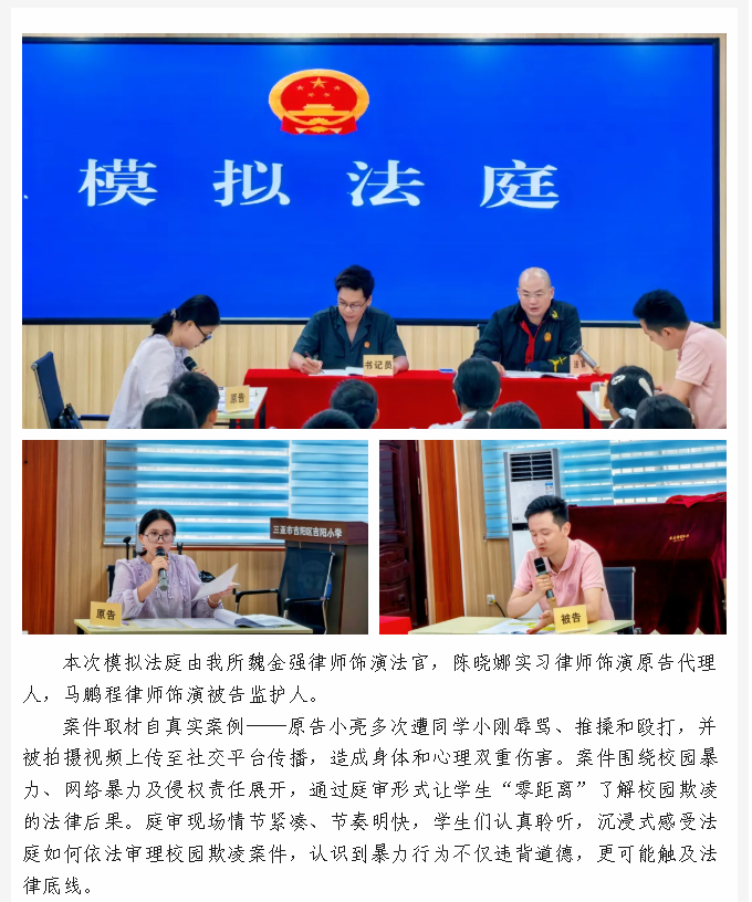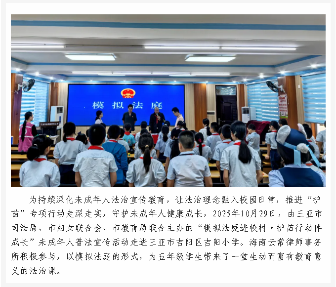 护苗行动·模拟法庭系列 | 模拟法庭走进吉阳小学,法治护航校园安全