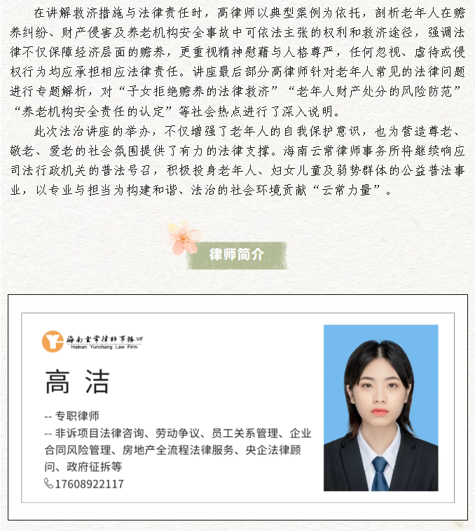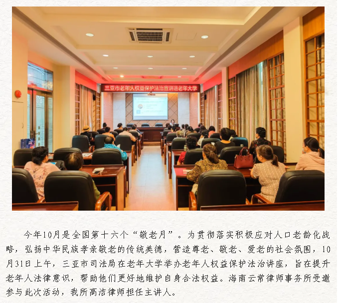 云常普法 | 以法为伴 让“夕阳”更温暖——云常律师走进老年大学开展老年人权益保护讲座