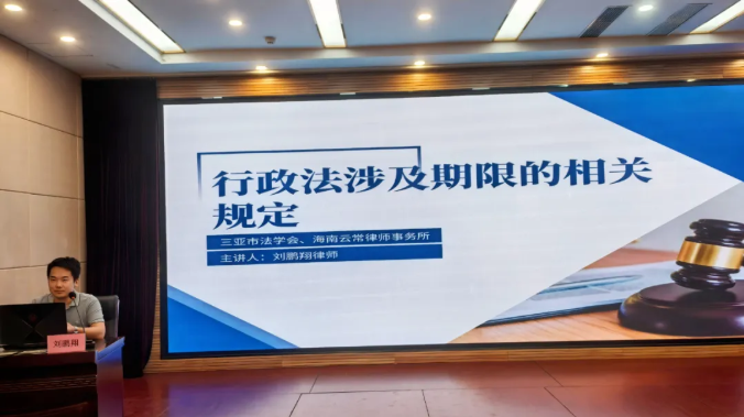 为进一步提升基层行政执法队伍的法治思维、规范化执法能力与廉政风险防控水平,近日,海南云常律师事务所律师刘鹏翔受三亚市综合行政执法局吉阳分局邀请,连续两天开展专题法律培训,围绕履职风险防控、文明执法边界、舆情应对以及行政法相关期限适用等重点内容进行系统讲授。本次培训在三亚市法学会指导支持下举行,旨在推动优质法律资源服务基层执法实践。