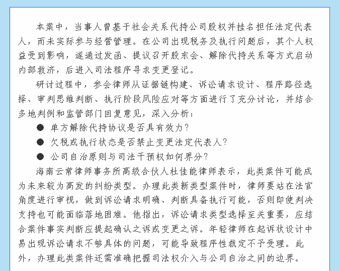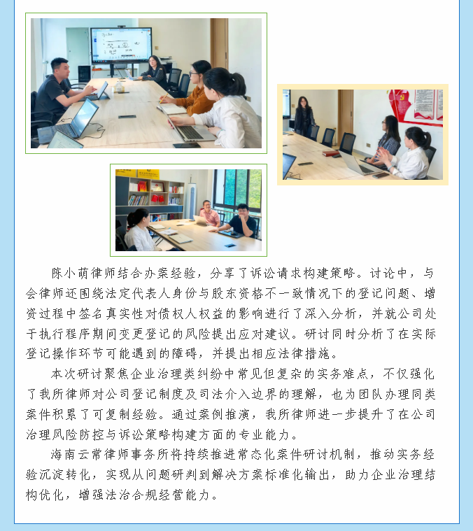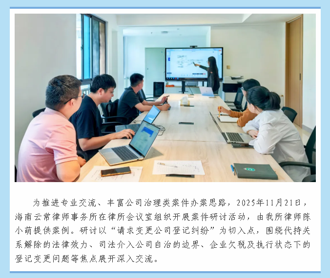 云常学堂|公司登记纠纷的法理思辨——海南云常律师事务所开展民事案例研讨
