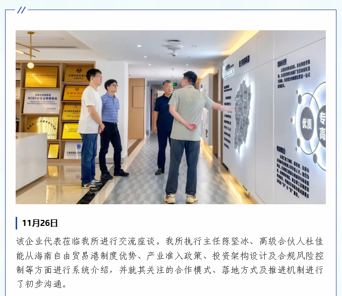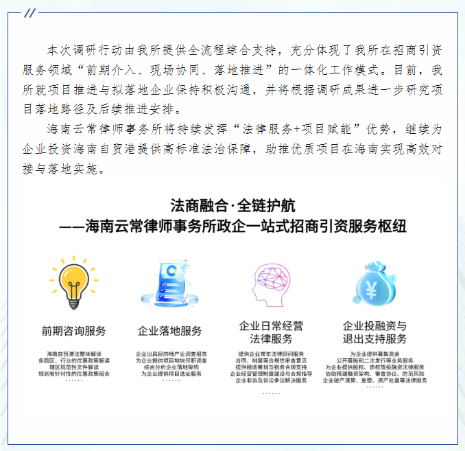 我所围绕企业拟落地海南项目提供全流程综合支持,持续深化招商引资服务