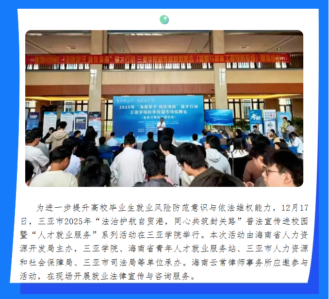云常动态 | “送法进校园,护航就业路”——云常律师走进三亚学院开展就业法律宣传与咨询