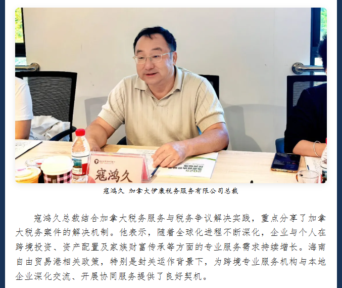 深化涉外法律与财税服务协同——加拿大伊康税务服务有限公司到访海南云常律师事务所交流