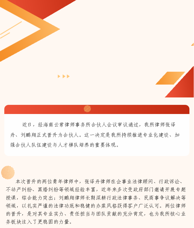 云常喜讯|祝贺张译丹、刘鹏翔两位律师晋升合伙人