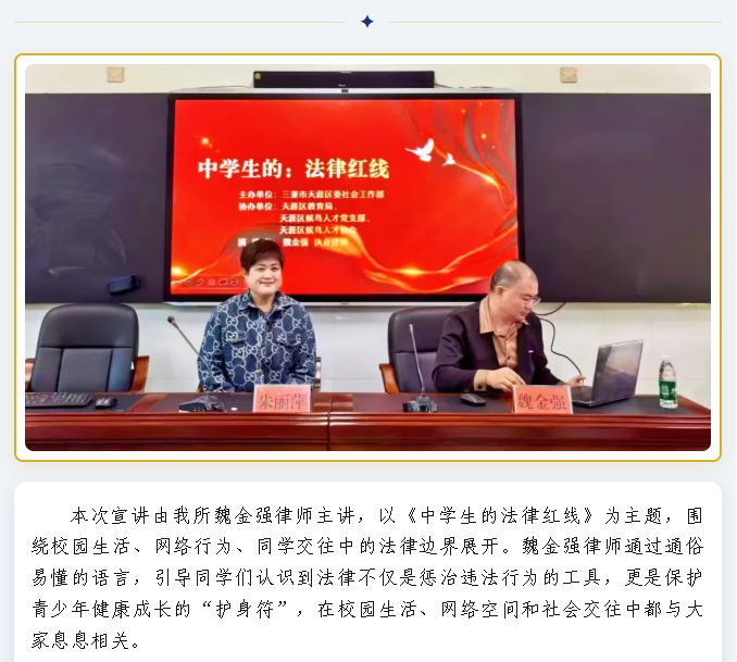 云常普法|守护青春不越线——我所魏金强律师走进桶井小学开展法治专题宣讲