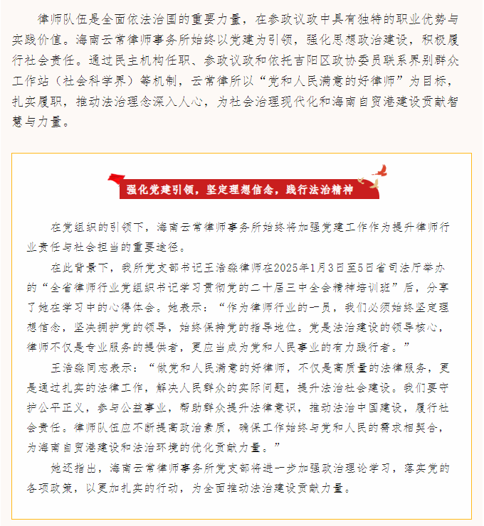 聚焦两会|党建引领 统战赋能——海南云常律师事务所律师两会履职与社会责任担当