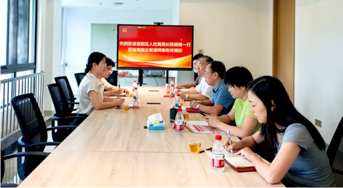为畅通政企沟通渠道,切实优化营商环境,推动人社政策精准落地,2025年6月25日,吉阳区人力资源和社会保障局局长陈娟娟一行莅临海南云常律师事务所开展走访调研,重点围绕企业经营发展、人才引进、技能培训、社保政策落实及劳动关系等内容开展深入交流。海南云常律师事务所主任汪印琪、执行主任陈坚冰,高级合伙人苏蕾、杜佳能及行政运营部相关人员参加了本次调研座谈。