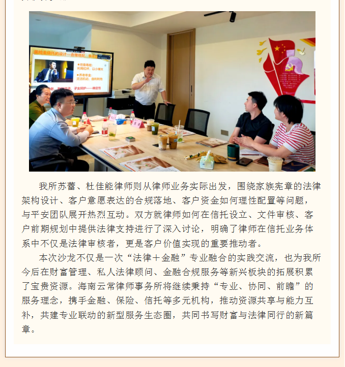 家业有“法”·传承有道——海南云常律师事务所举办“保险金信托与财富传承实务分享”沙龙活动