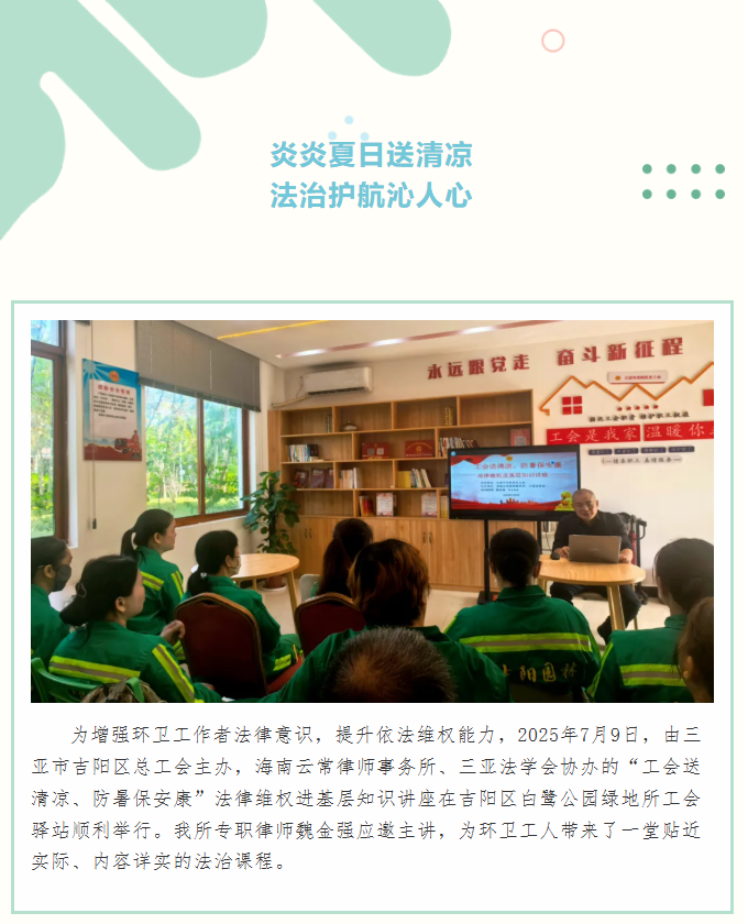 炎炎夏日送清凉,法治护航沁人心——我所受邀开展“工会送清凉、防暑保安康”法律维权进基层讲座