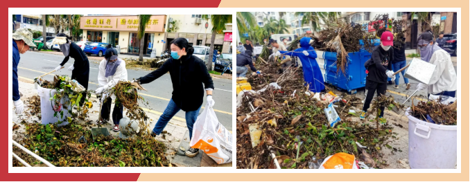 8月28日,党支部书记王浩淼同志带领律所党员、律师和行政运营部人员前往三亚市第五中学门口,投身灾后环境清理。大家分工明确、协作有序,手持铁锹与扫帚,冒着高温湿热,清扫步道积淤,搬运倒伏树枝,将枯枝落叶、杂物垃圾一车车装运。党员的先锋模范作用与同仁们的积极担当相互呼应,汇聚成守护家园的强大合力。