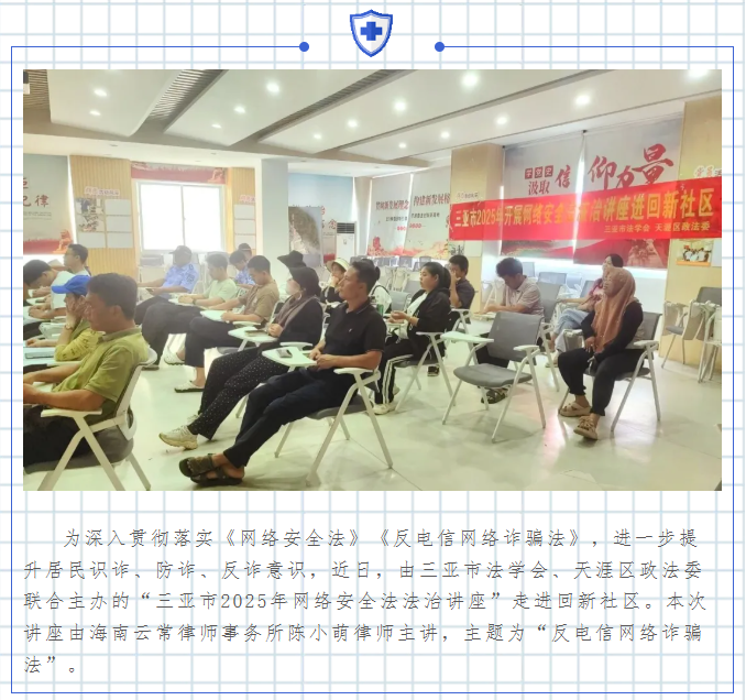 云常普法|反诈普法进社区,守护居民“钱袋子”——海南云常律师事务所走进回新社区开展网络安全法治讲座