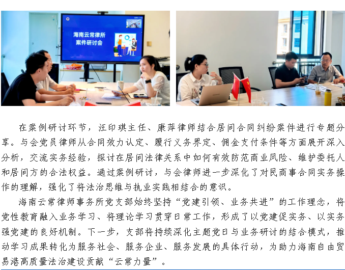云常党建 | 学思践悟强党性 以案研讨促提升——中共海南云常律师事务所支部委员会开展案例研讨主题党日活动