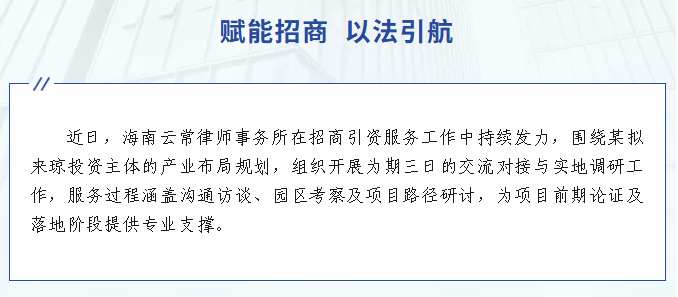 我所围绕企业拟落地海南项目提供全流程综合支持,持续深化招商引资服务