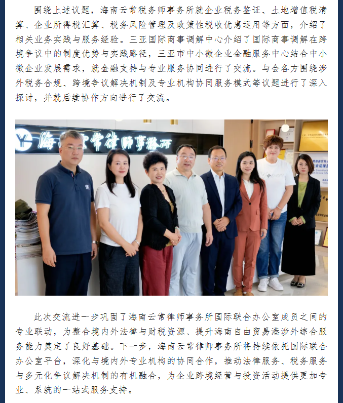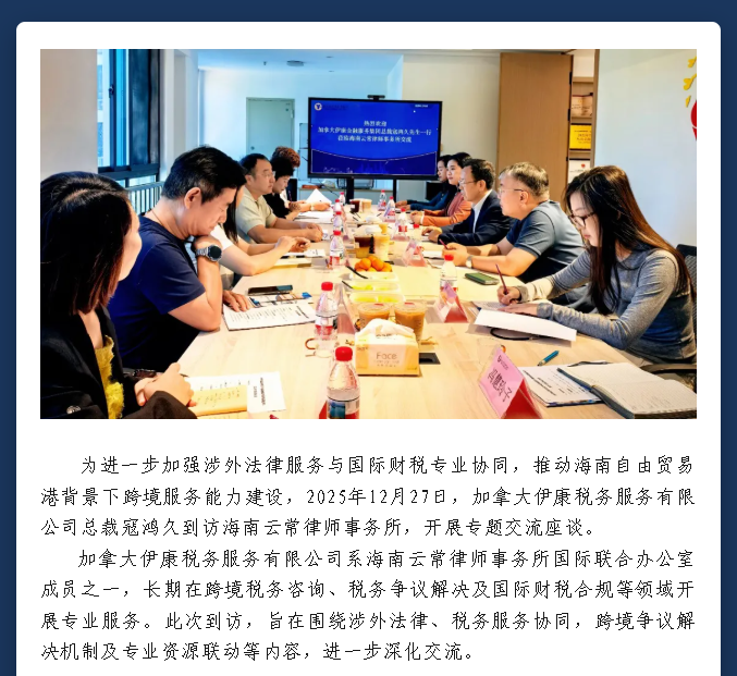 深化涉外法律与财税服务协同——加拿大伊康税务服务有限公司到访海南云常律师事务所交流