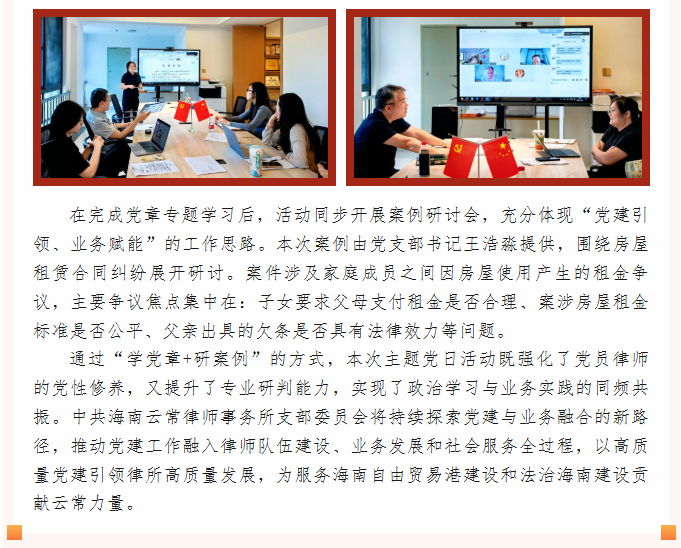 云常党建|学党章 强党性——中共海南云常律师事务所支部委员会开展主题党日活动暨案例研讨会