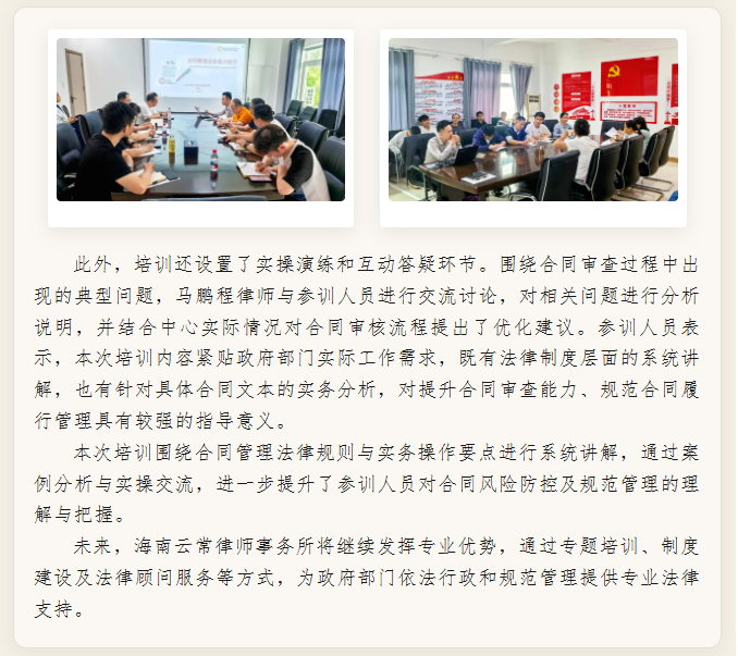 云常动态 | 海南云常律师事务所马鹏程律师受邀为三亚市城市管理服务中心开展合同管理业务培训