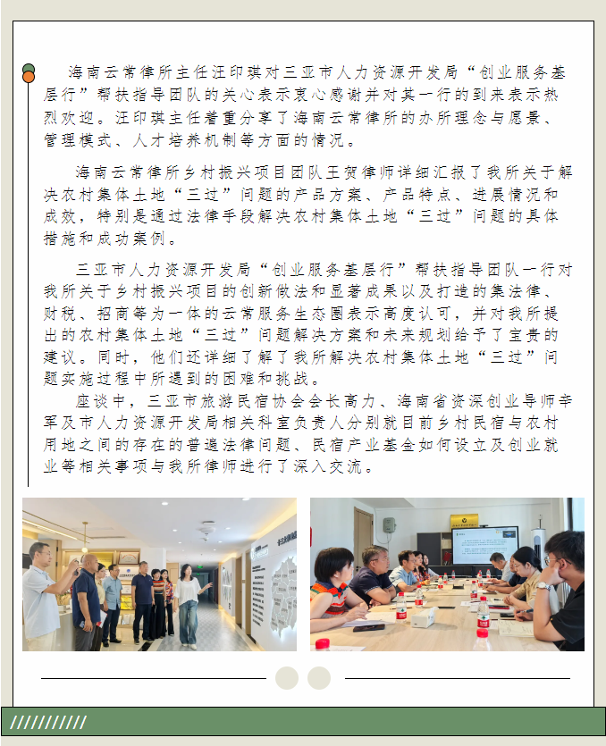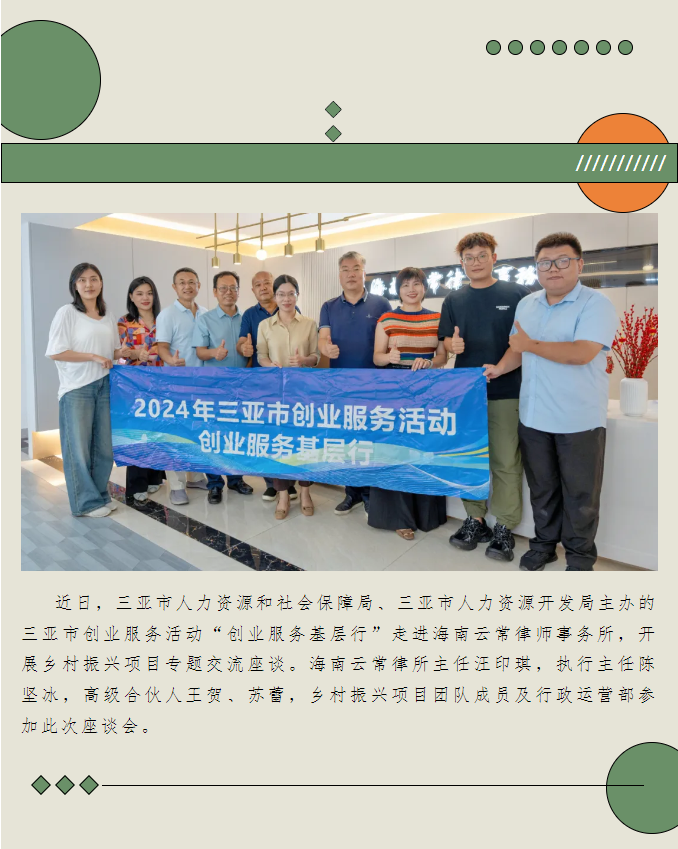 三亚市人力资源开发局“创业服务基层行”帮扶指导团队一行莅临我所开展乡村振兴项目专题交流座谈