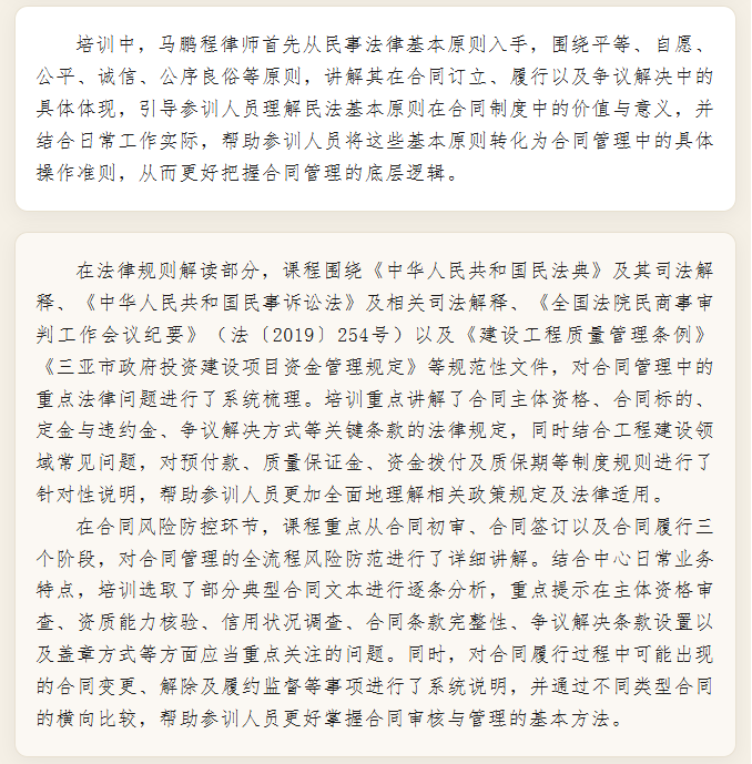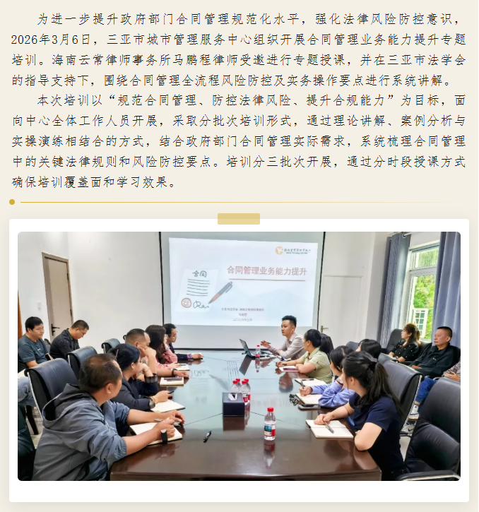 云常动态 | 海南云常律师事务所马鹏程律师受邀为三亚市城市管理服务中心开展合同管理业务培训