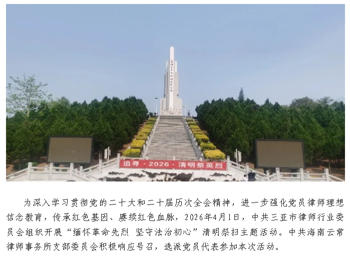 云常党建|缅怀革命先烈 坚守法治初心——中共海南云常律师事务所支部委员会参加清明祭扫主题活动